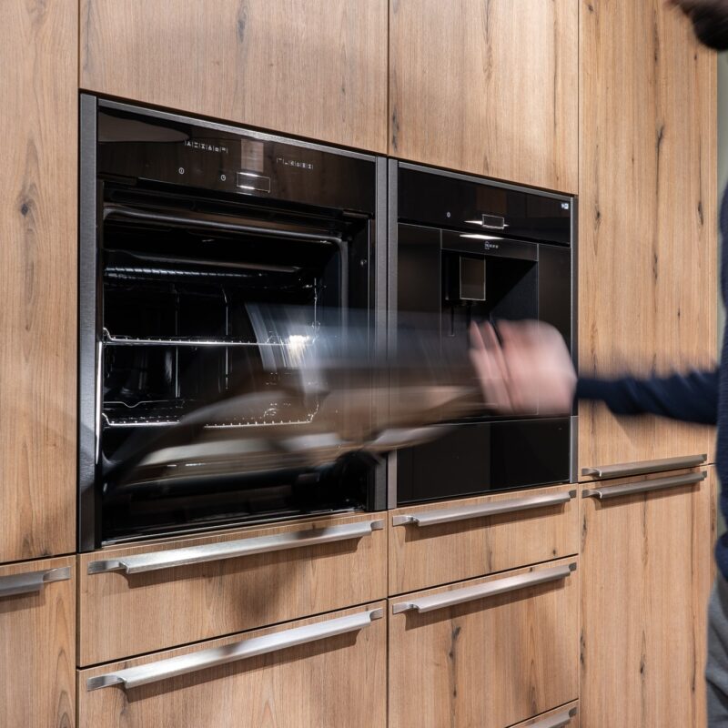 Steam, frying oil, foods that cause stains – a kitchen has a lot to cope with. Cooking vapours and dust form a particularly tight connection. That is why our furniture is protected by high-quality, easy-care surfaces that are easy to clean. But beware! Aggressive liquid detergents, scouring agents, polishes, wax, solvents, vinegar-based cleaners and steam cleaners are a no-no, just like acidic and silicone-based cleaning agents. Nitro-cellulose combination thinners or synthetic resin thinners can also cause damage and will void your warranty.
