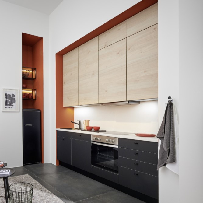 We don’t believe in one-size-fits-all designs – it’s one of the beauties of a bespoke Nolte Kitchen. So you have the freedom to combine Artwood’s light or dark finishes with any of our other ranges to create your own calm and clear space – teamed with light wall units and a sleek worktop, you’ll have a bigger and more spacious feel than you ever imagined. It’s up to you how you make your kitchen your own.