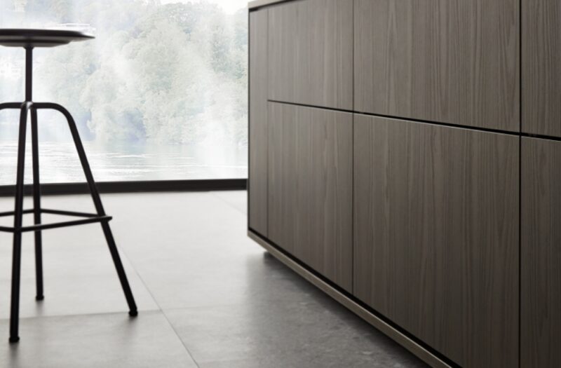 The neoBOX drawer and pull-out system brings exquisite design to the cabinet interior. The narrow side frame appeals for its simple elegance, and the anthracite finish harmonises perfectly with the kitchen’s other high-quality materials.