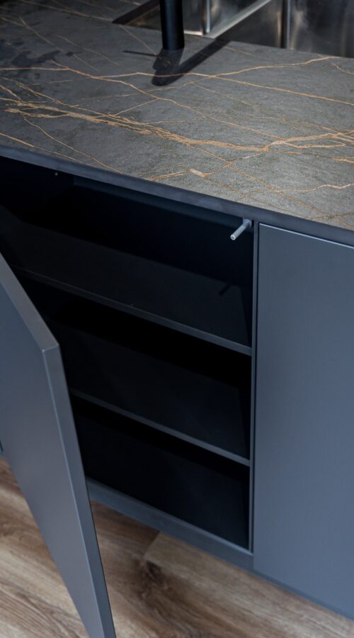 Inspired by Italian design, neoLODGE’s grooved veneer fronts and intelligent details – like side-fitted ovens or display units in manganese bronze – offer the ultimate in ergonomic elegance. Combined with MatrixArt and MatrixZero options, it creates a kitchen defined by sleek lines and rich colours that catch the light beautifully.